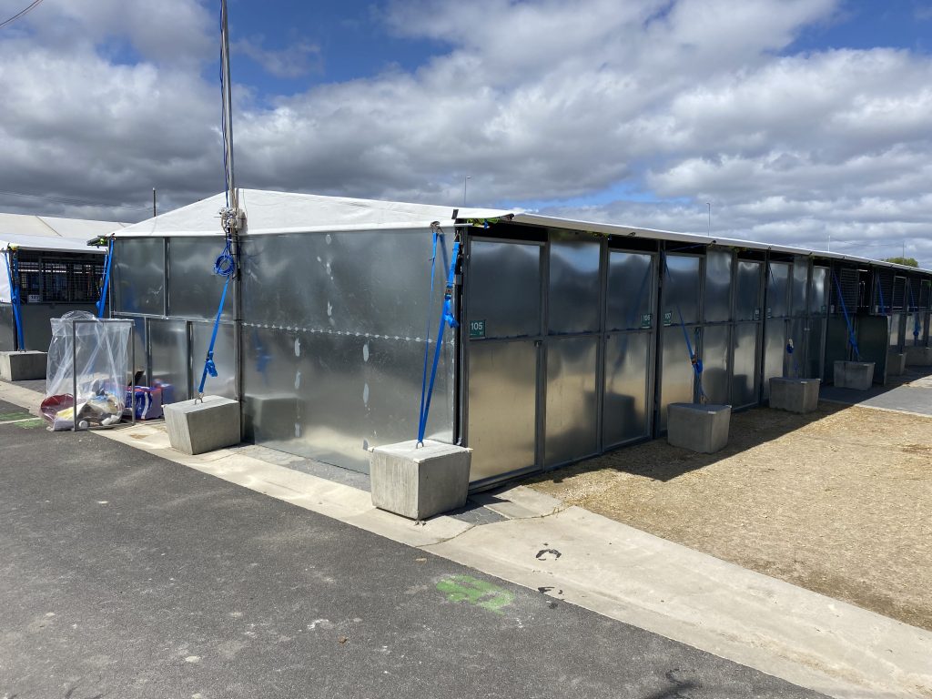 Heavy-duty steel horse stables and stalls engineered for Australian conditions, offering strength, safety, and transportable design.